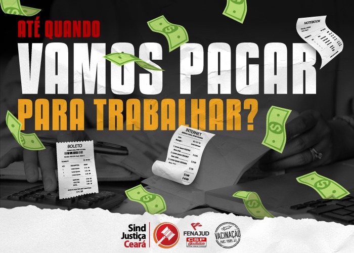 Um ano de pandemia e o SindJustiça Ceará continua a perguntar: Até quando os servidores irão continuar pagando para trabalhar? O sindicato exige um auxílio-tecnológico ou o ressarcimento dos gastos que os servidores estão tendo desde o ano passado para continuar a atuar em teletrabalho. A conta está alta, chega de pagar para trabalhar!