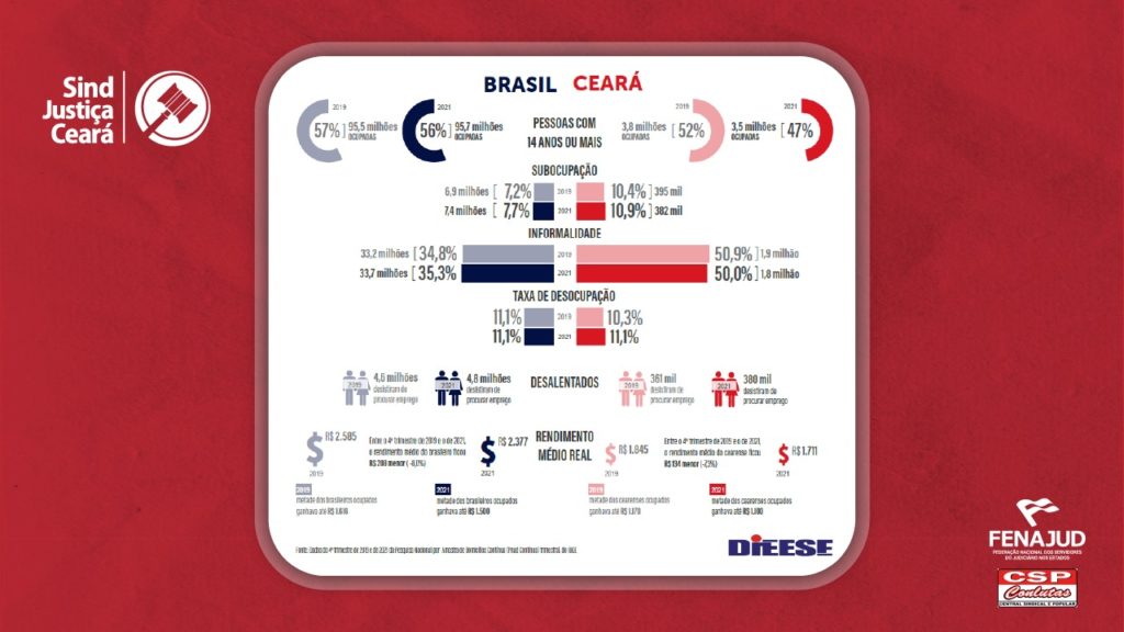 As centenas de milhares de mortes por Covid-19, no Brasil, e as consequências da guerra na Ucrânia para a economia internacional são outros fatores que fazem o mercado de trabalho apenas dar sinais de recuperação. Além disso, as vagas de trabalho que estão surgindo vêm das contratações de trabalhadores sem proteção trabalhista ou previdenciária. Em 2021, 34 milhões de brasileiros, ou seja, 35% dos trabalhadores do país, já trabalhavam sem garantias trabalhistas.