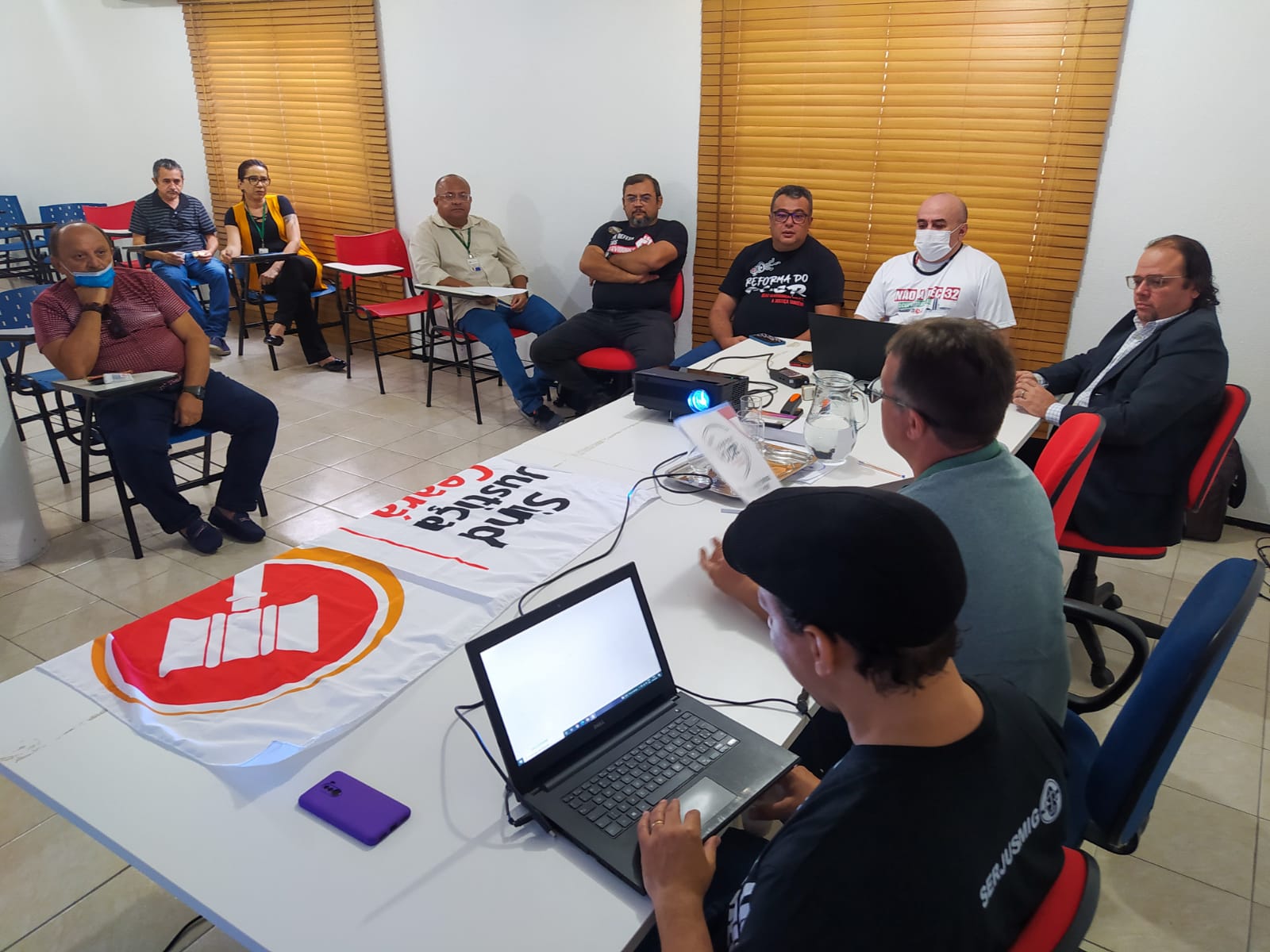 Com as reuniões desta semana, a diretoria colegiada do SindJustiça Ceará finaliza o ciclo de encontros com servidores de todo o Judiciário cearense. Nas semanas anteriores, foram realizados 07 encontros com servidores: estabilizados do TJCE (26/04); do Maciço de Baturité (27/04); da Região do Cariri (29/04); Região Norte (03/05); Região dos Inhamuns (04/05), Região Centro-sul (05/05); Vale do Jaguaribe (06/05). Antes das articulações com o interior, o SndJustiça realizou uma roda de conversa, com os servidores em plantão no FCB e uma série de visitas diárias às SEJUDs do fórum.
