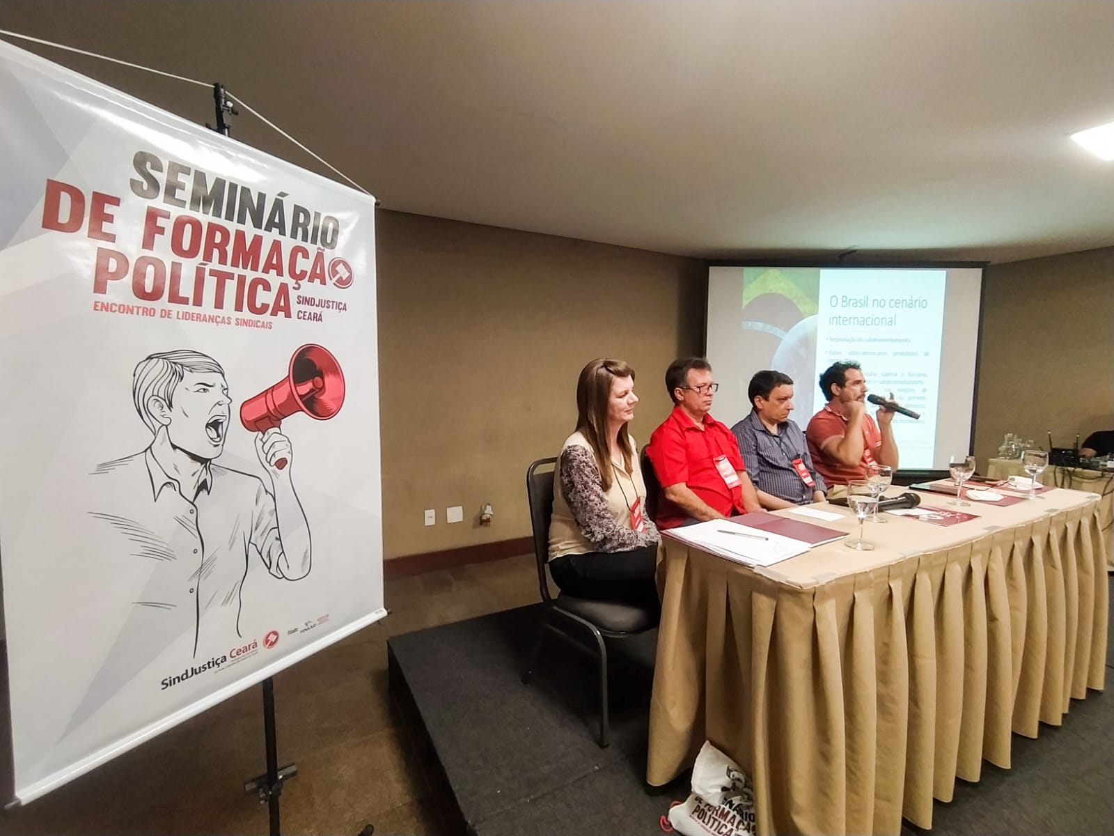 A mesa contou com a presença dos professores de economia da UFC Fábio Sobral e André Ferreira, a coordenadora-geral da Federação Nacional dos Trabalhadores do Judiciário nos Estados (Fenajud), Arlete Rogoginski e o coordenador-geral do SindJustiça Ceará, Roberto Eudes.
