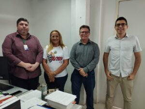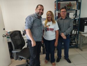 O coordenador-geral do SindJustiça Ceará, Roberto Eudes, juntamente com o coordenador de formação política e sindical, Arimatea de Brito, e a delegada regional dos Inhamuns, Ivone do Nascimento, estiveram no Fórum Clóvis Beviláqua nesta quinta-feira (19).