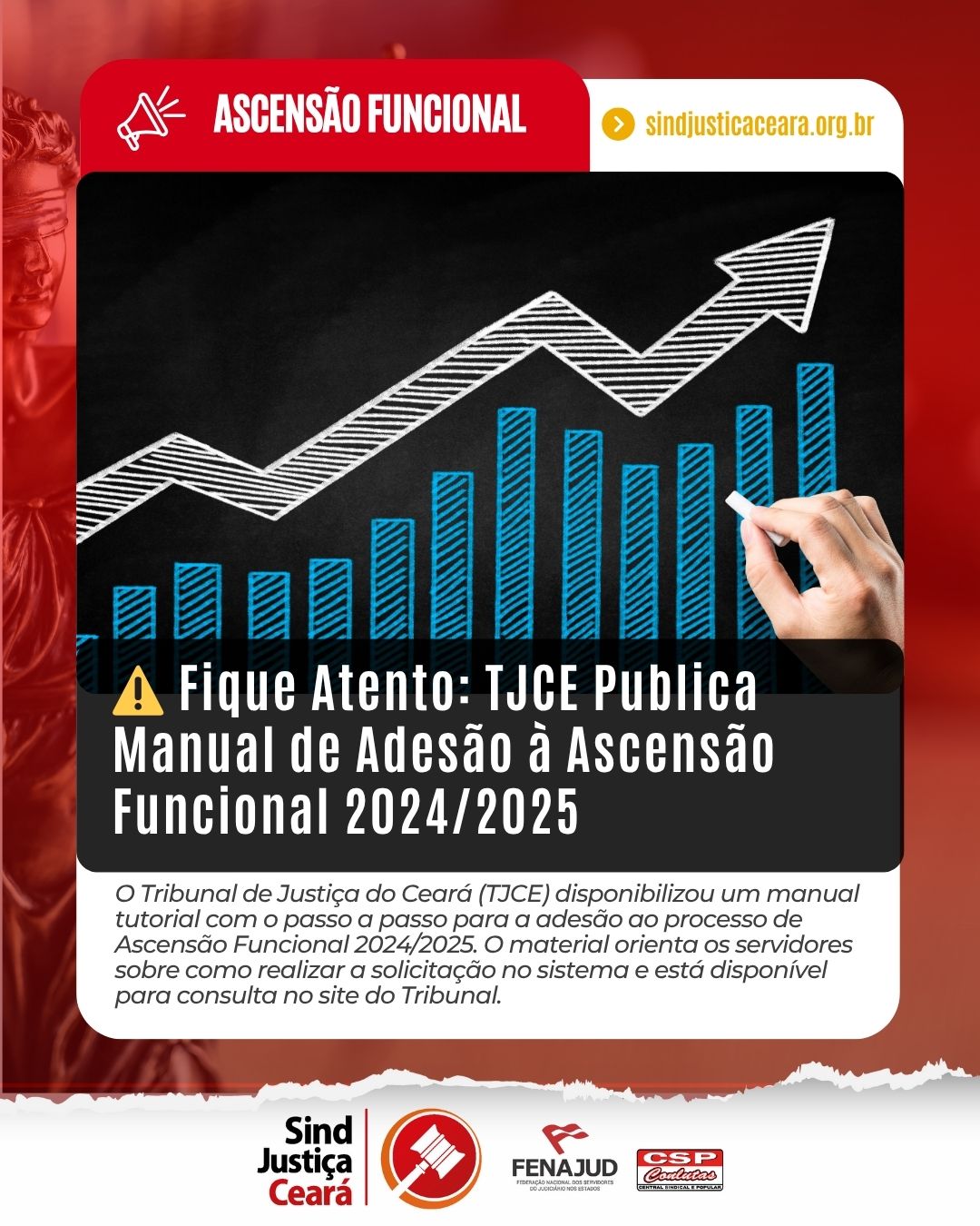 📢 O SindJustiça seguirá vigilante, acompanhando a implementação do processo de ascensão. A luta pela valorização da categoria passa também pelo respeito aos instrumentos de progressão e promoção na carreira.
