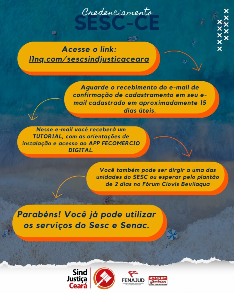 O SindJustiça-CE renovou, em benefício de seus associados, a parceria com o Serviço Social do Comércio do Ceará (SESC/CE), por meio de convênio com o Sistema Fecomércio, que inclui também o SENAC.