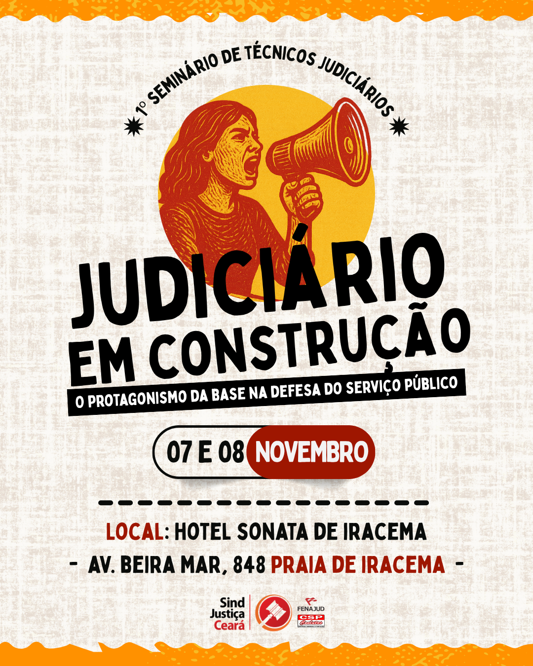 📣 Vem aí o I Seminário com Técnicos Judiciários do SindJustiça Ceará!