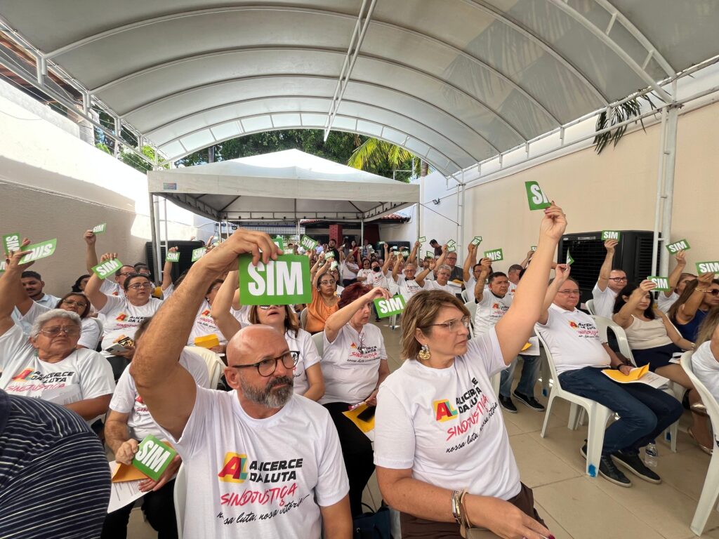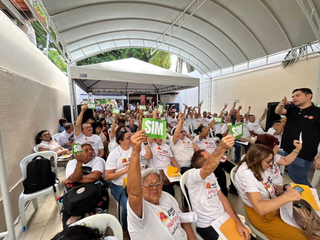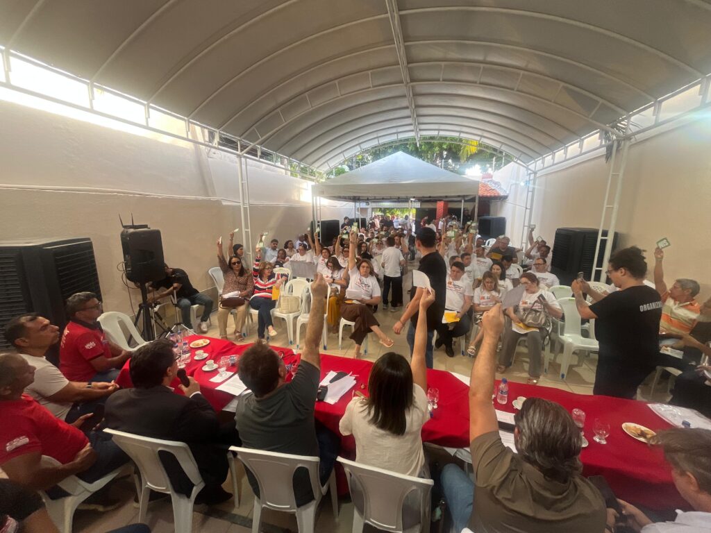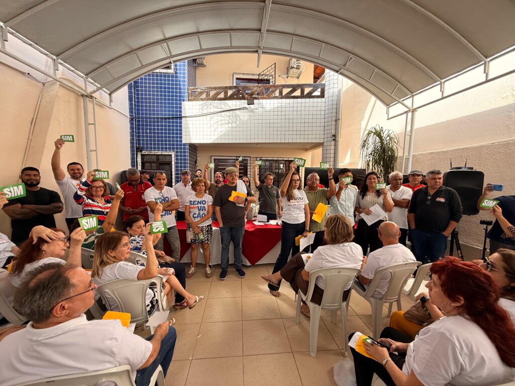 A sede do sindicato ficou completamente lotada, reunindo cerca de 150 servidores filiados, da capital e de diversas regiões do interior do Ceará. Os presentes acompanharam atentamente os debates e participaram ativamente das deliberações, com intervenções e propostas apresentadas ao longo da Assembleia.