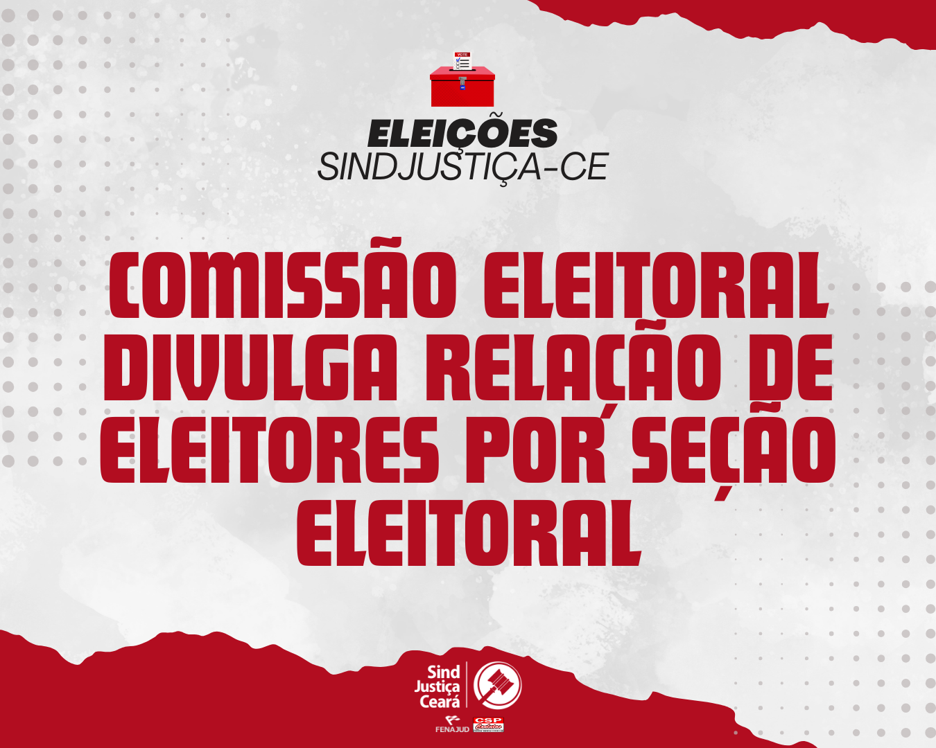 A Comissão Eleitoral das Eleições do SindJustiça Ceará publicou, neste sábado (31/01), Normativo nº 03/2026 que divulga a relação de filiados eleitores por seção eleitoral.