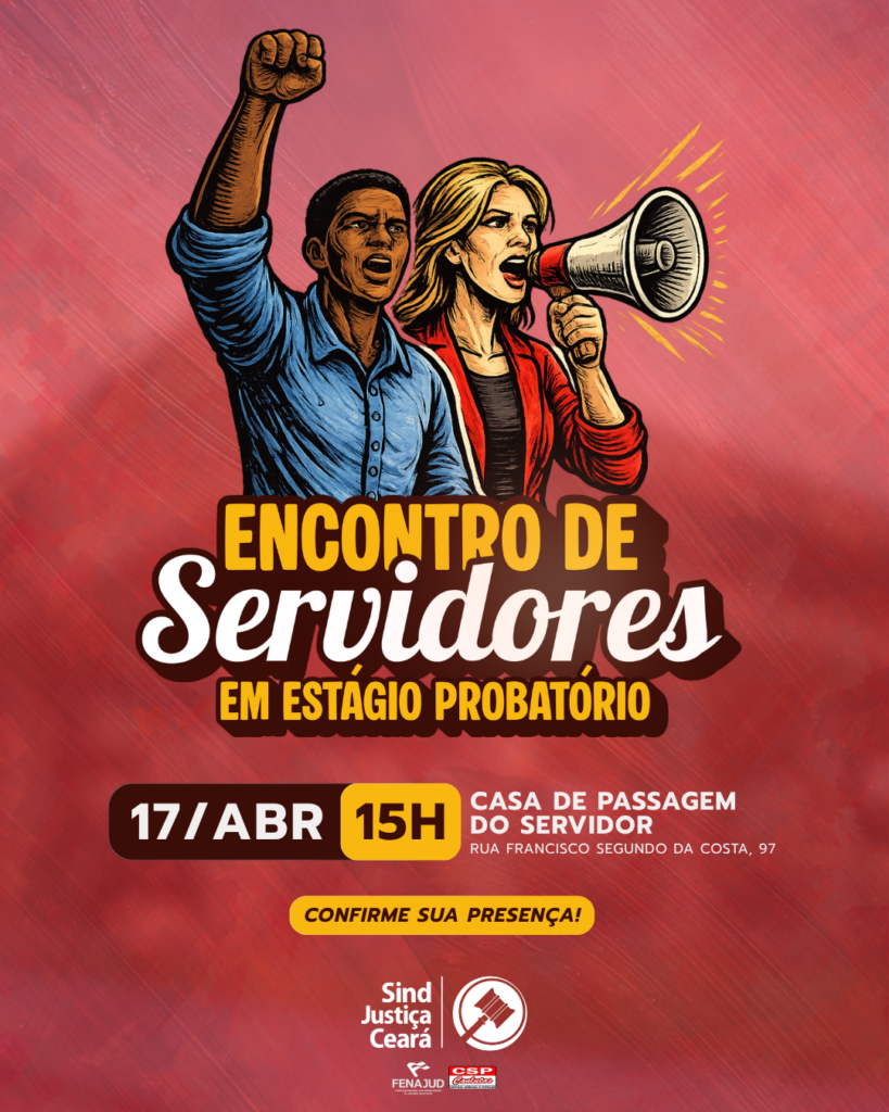 11 abr 2026 | O SindJustiça Ceará convida os servidores em estágio probatório para um momento de diálogo, integração e construção coletiva. 💬 O Encontro será realizado em formato de roda de conversa, com o objetivo de alinhar pautas e planejar as lutas dos servidores que estão em estágio probatório, fortalecendo a união da categoria desde o início da […]