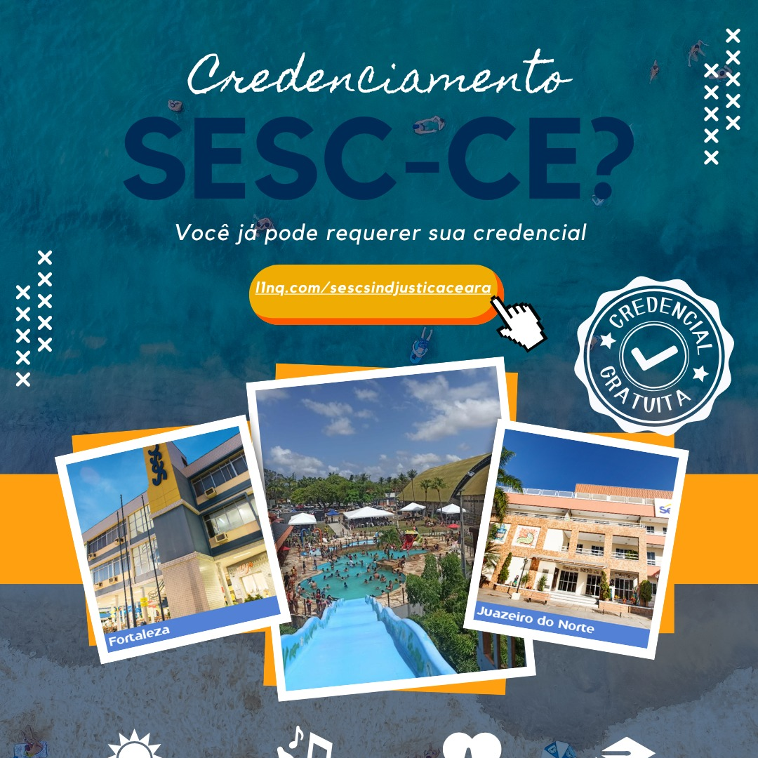 O SindJustiça-CE renovou, em benefício de seus associados, a parceria com o Serviço Social do Comércio do Ceará (SESC/CE), por meio de convênio com o Sistema Fecomércio, que inclui também o SENAC. Acesse o link do Google (disponibilizado pelo sindicato) e preencha o formulário.